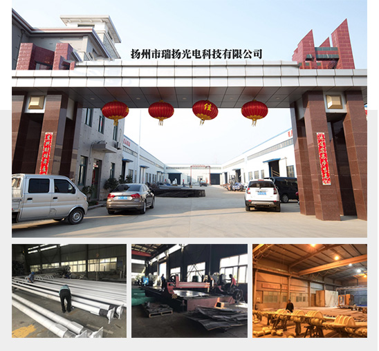 揚州瑞揚光電科技有限公司座落在中國歷史文化名城揚州北郊郭集工業(yè)園。本廠占地面積約5000多平方米,建筑面積2800平方米,固定資產與流動資本共1500多萬元。工廠備有15m×壓力1200噸大型折彎機,配套高速縱剪機、沖床、車床、刨床、半自動埋弧焊機、焊接探傷設備、等離子切割機、合縫機、校直機以及多種適應鋼結構錐型路燈、高桿燈、中小桿、交通標志桿、通訊桿等制作的必備機械,計30余臺。企業(yè)注重人才招入使用與培養(yǎng):在職員工150多人,專門從事燈桿、燈具研究、制作的高工就有10人。